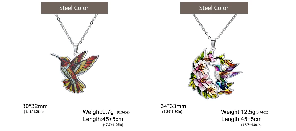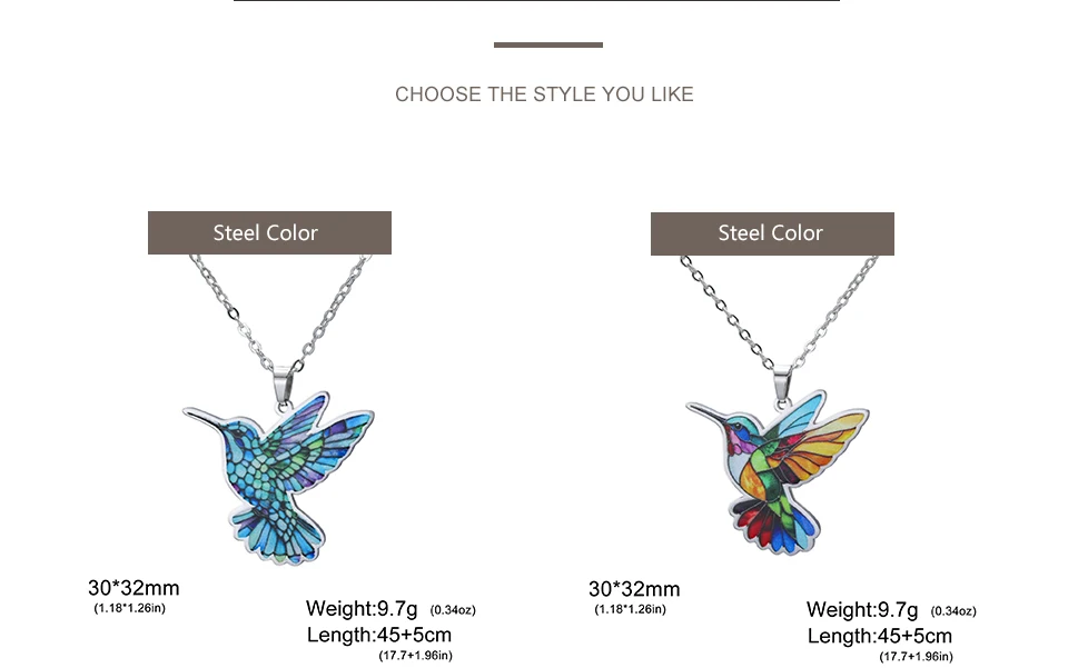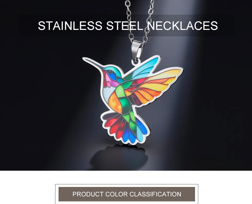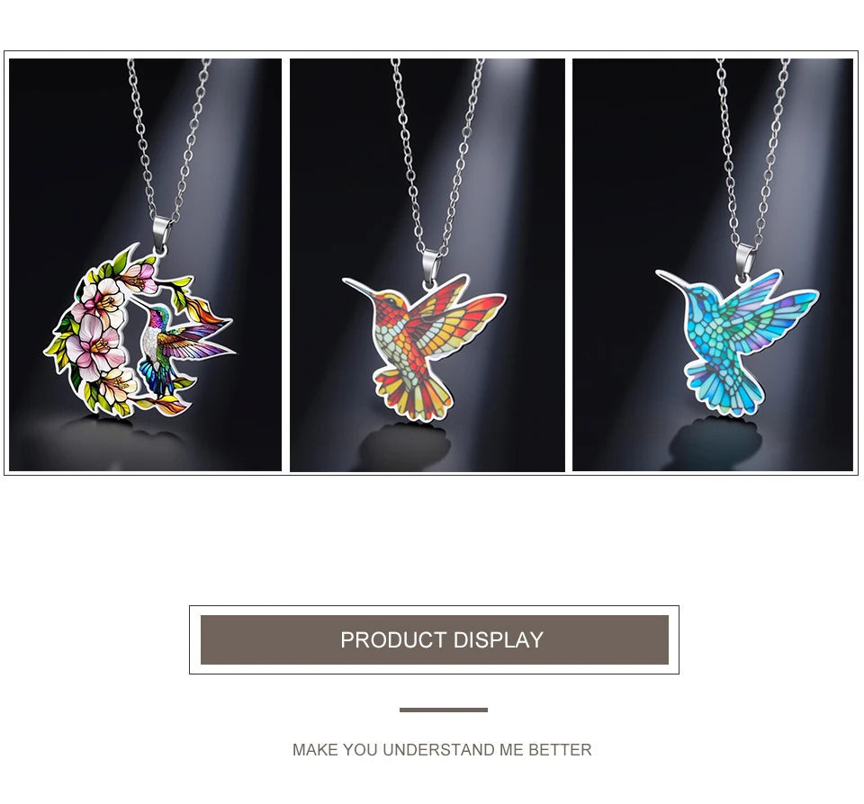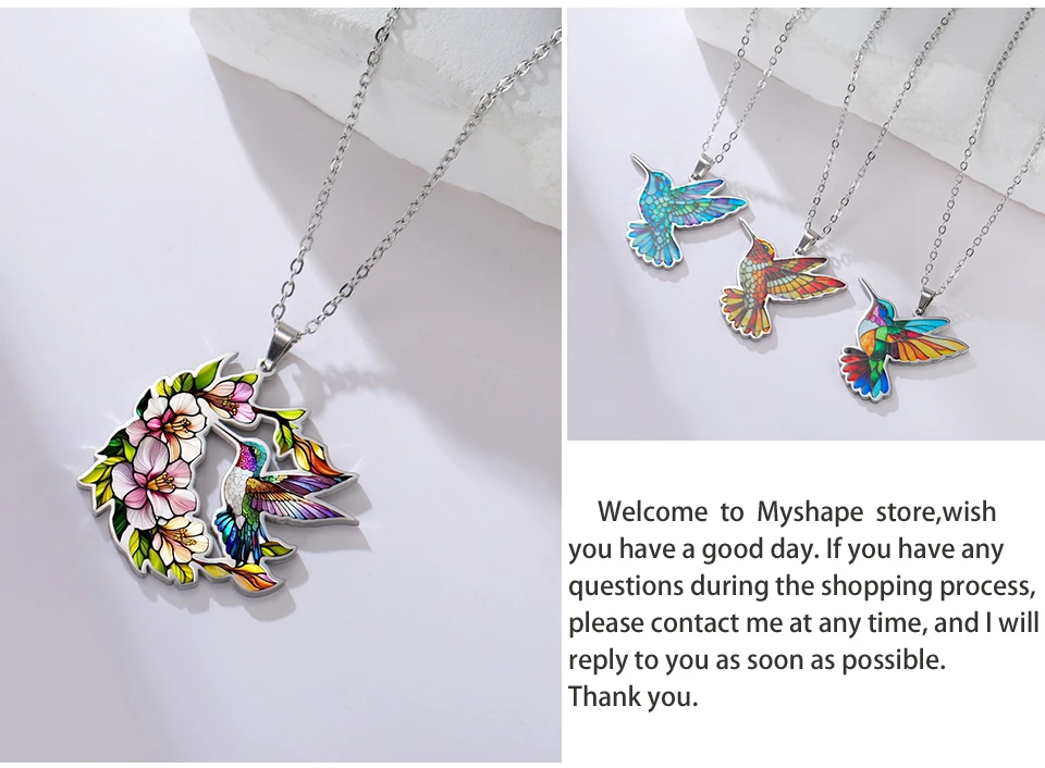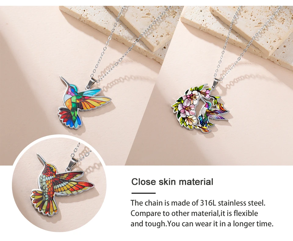 Featuring a colorful hummingbird and flower design, this necklace adds a trendy touch to any outfit.