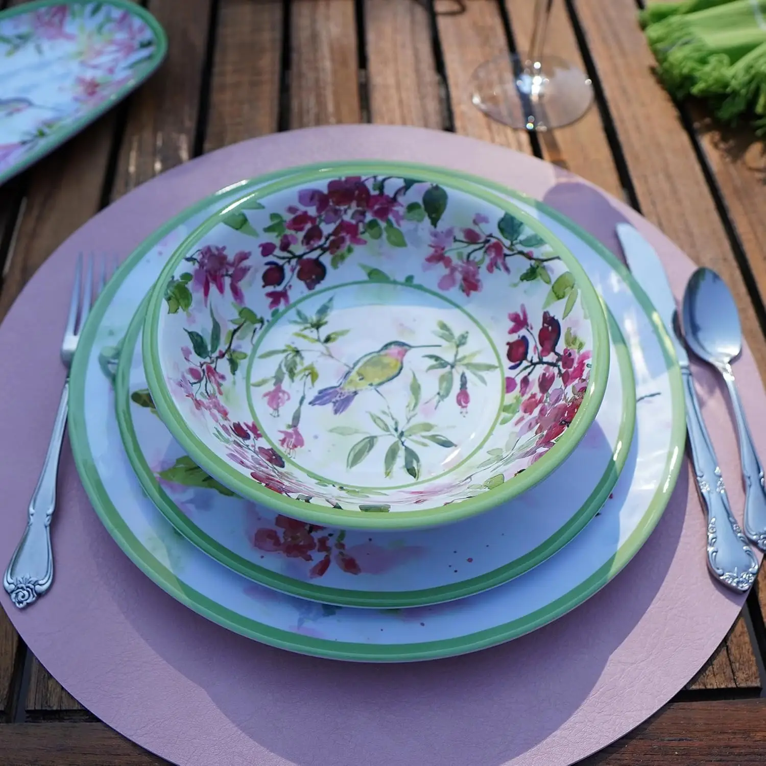 5. Part of the Hummingbirds Melamine Collection, this set pairs beautifully with matching platters, mugs, bowls, and teapots. Create a fully coordinated table for garden parties, bridal showers, or spring luncheons. Each piece offers a cohesive aesthetic that brings joy and elegance to your kitchen and table.