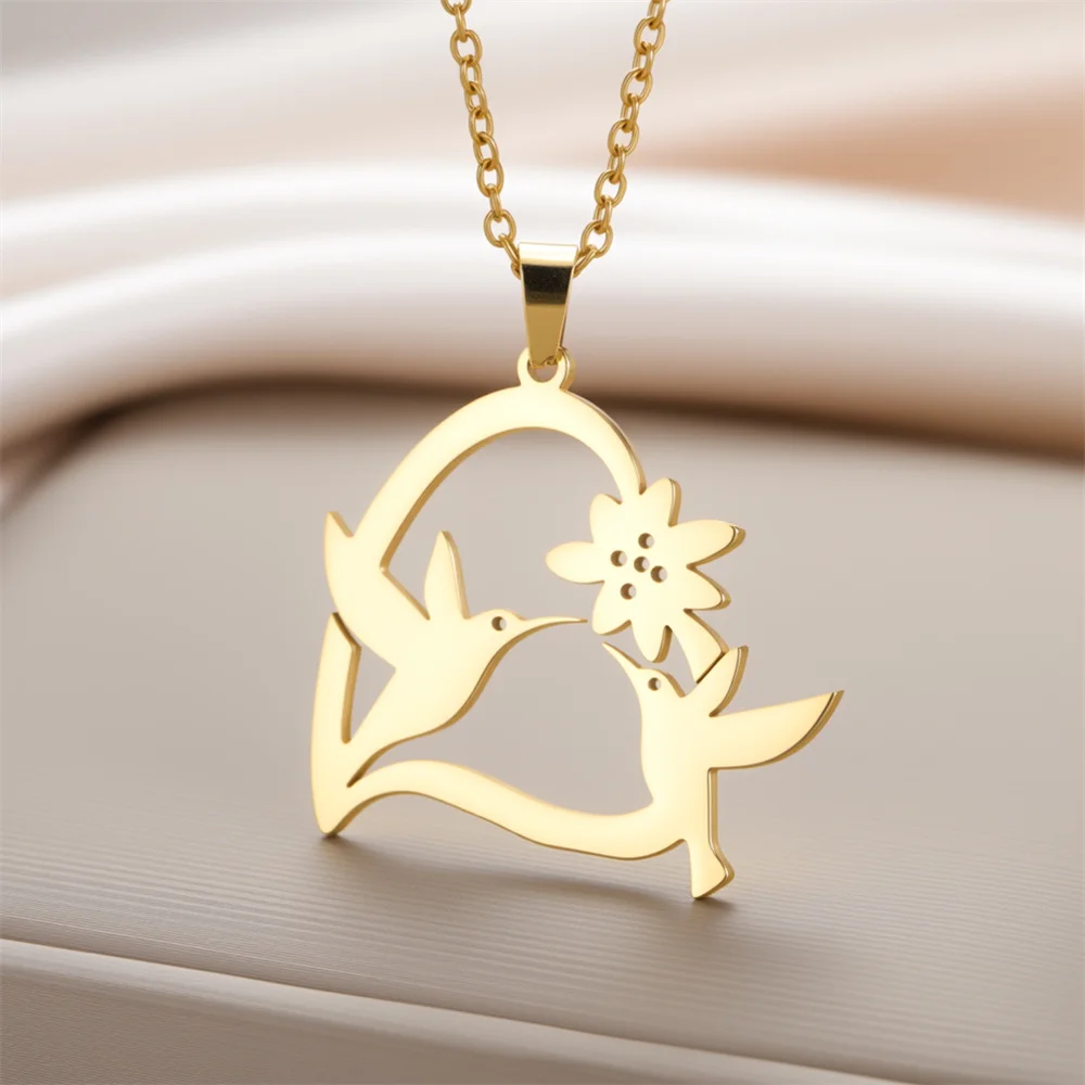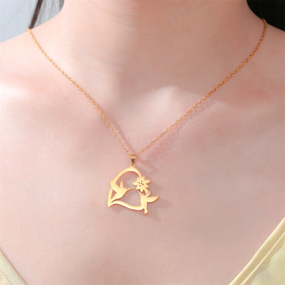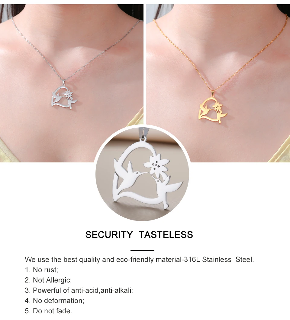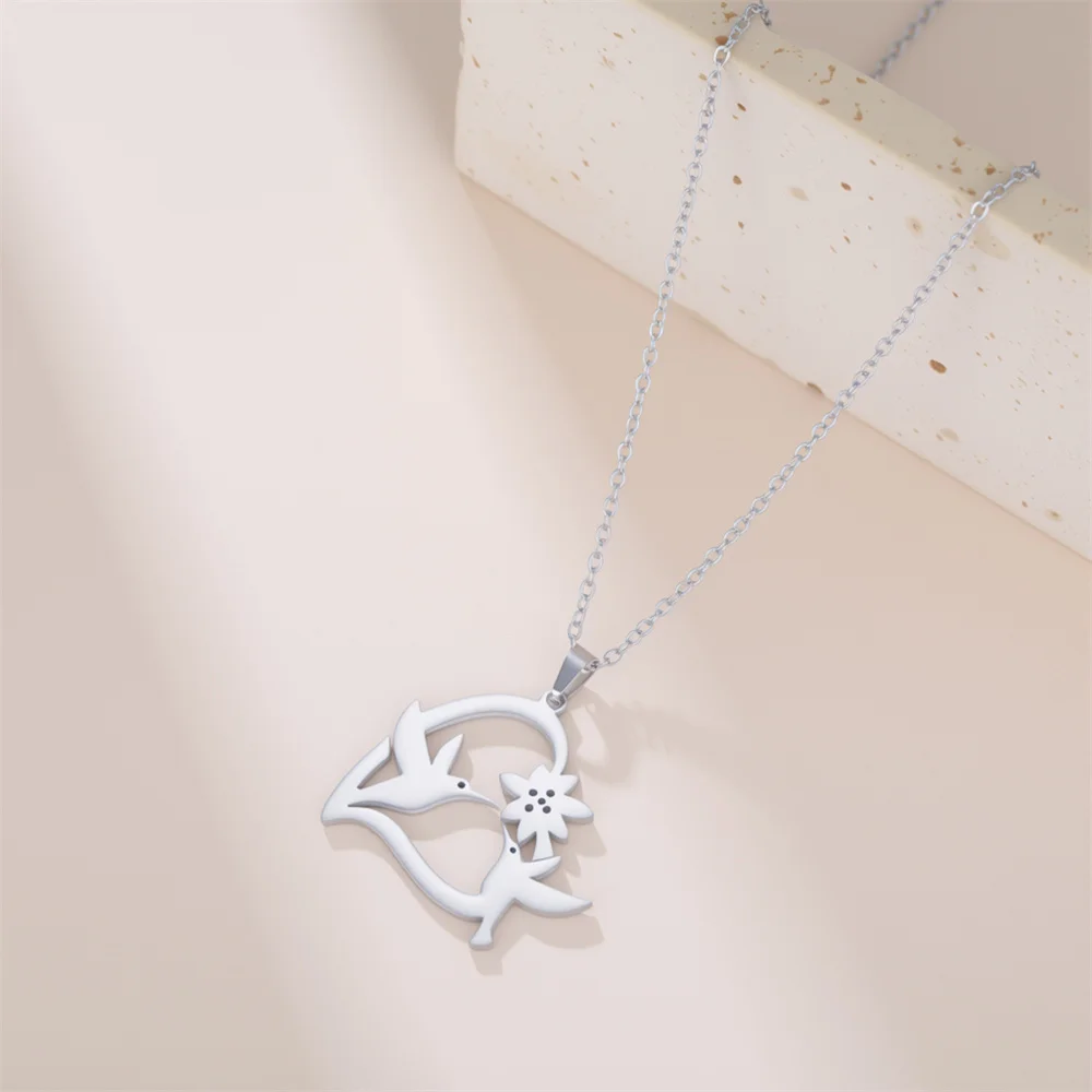 This beautiful hummingbird necklace has the meaning of “ Everything is beautiful in this world ” the vivid bird kiss the flower gently has an Elegant Feeling. This silver hummingbird necklaces pendant looks great attractive under the sunshine!